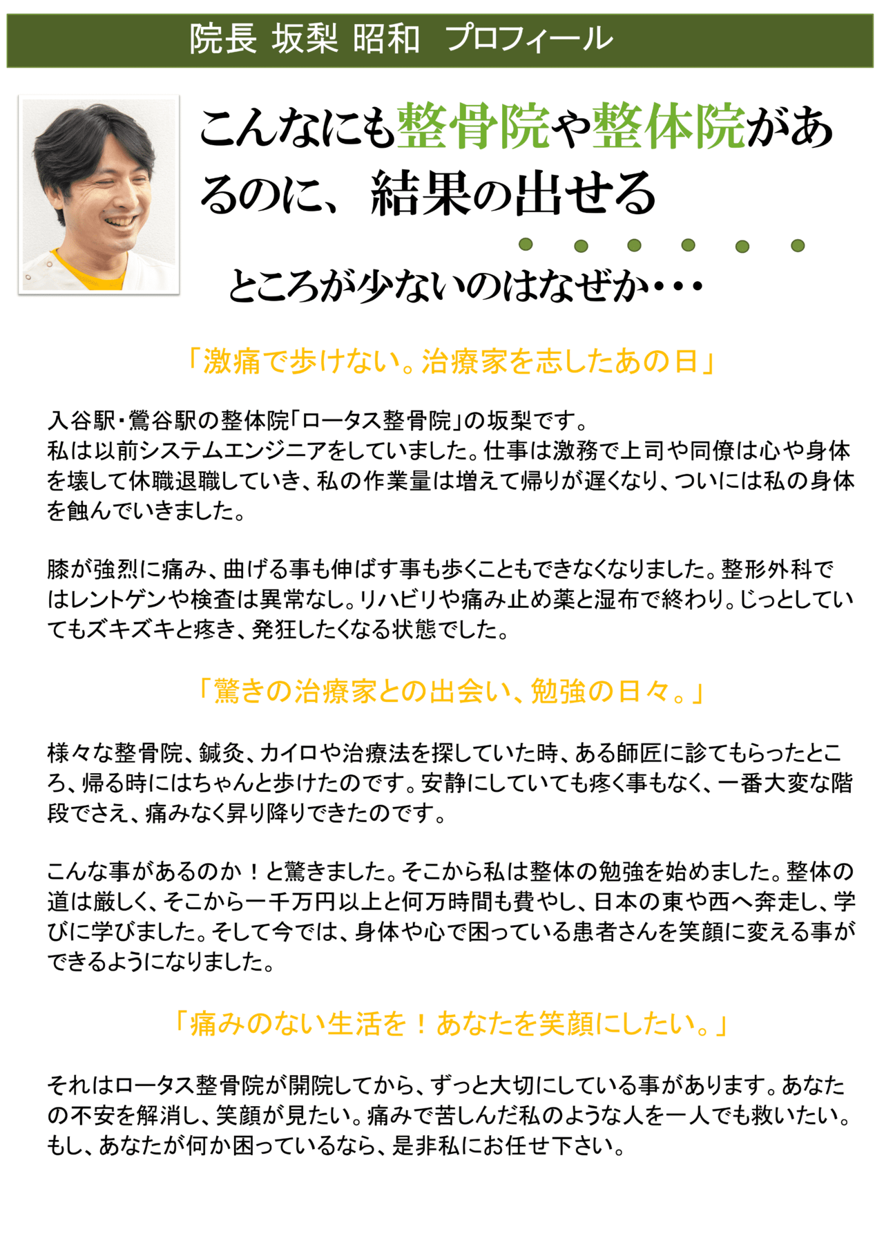 でも身体が、そして環境が良くなることはありませんでした。どんどん暗く落ち込んでいきました。そんな中で出会ったのがロータス整骨院でした。