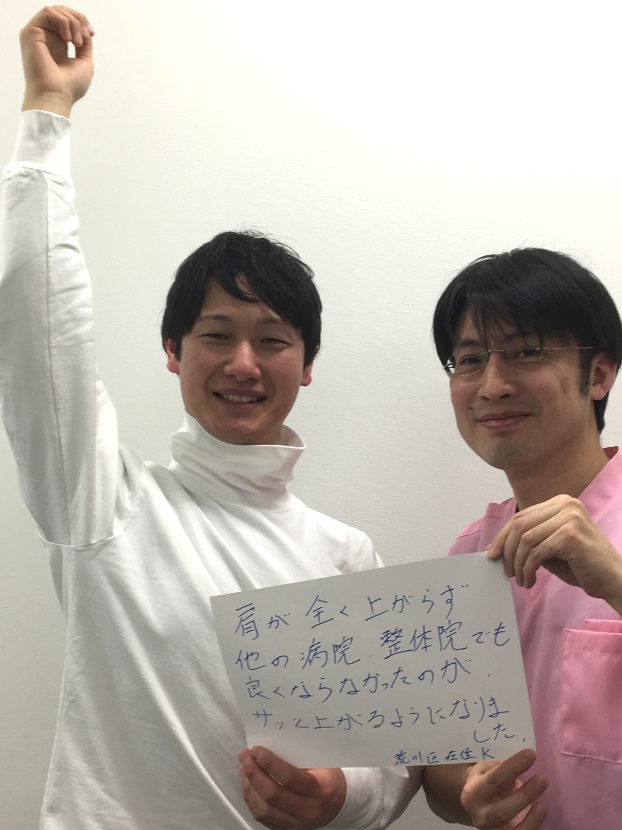 今まで悩んでいたのが嘘みたいに、たった一回の治療でサッと肩が上がったのです。私の気持ちも上がりました。